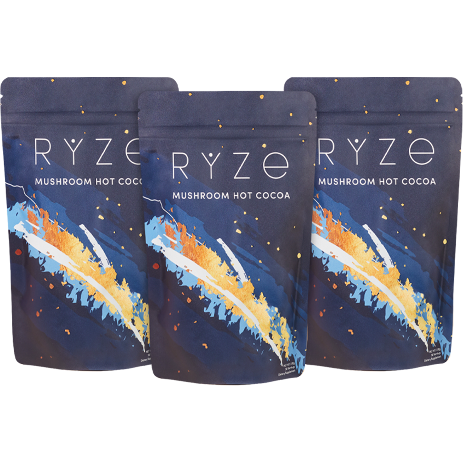 RYZE Mushroom Hot Cocoa. a nighttime treat that marries the magical calming powers of reishi with the snooze-inducing benefits of L-theanine. glycine and melatonin for a blend that helps you unwind at night and wake up refreshed in the morning. Blended with cacao powder for powerful antioxidants and coconut water for hydration. you'll start a better day the night before.